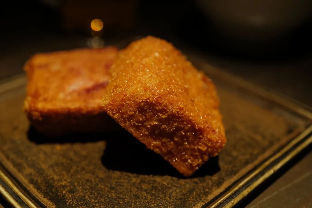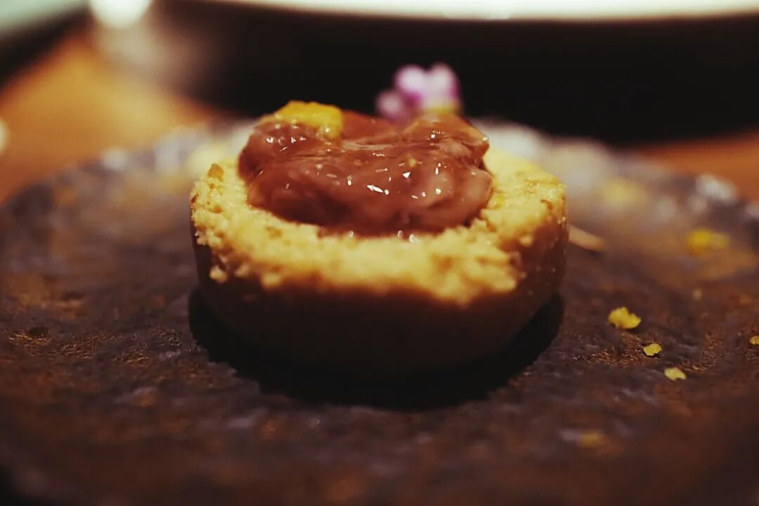 之前非常喜欢的酒糟无花果黄油,加入了新疆无花果、清酒酒糟与黄油调制的"日式曲奇饼",吃着有点像芝士蛋糕的自制饼干底,但更甜润软糯,就,狠下酒……