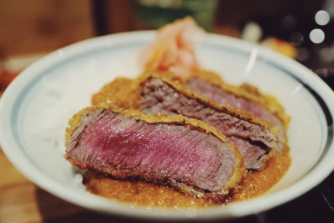 重磅推荐他家的咖喱和牛饭,第一次吃真的是跟朋友大型惊艳到,之后就成了每次必点的干饭选项……我一个对碳水避之不及的人,简直完全拜倒在这碗饭下:脆炸和牛极致香口,果泥入菜(感觉是南瓜和苹果),配上香料气息浓郁又微微甜的酱汁,光盘真的不是梦。