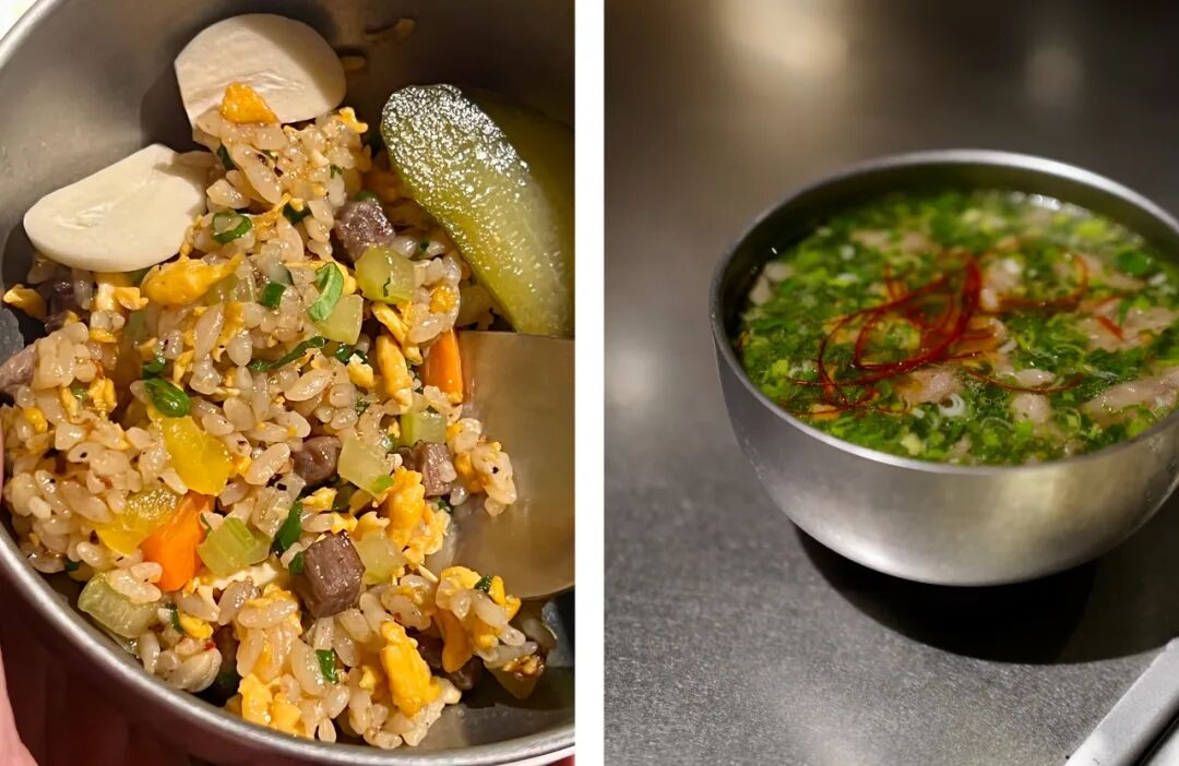 他家的和牛炒饭,我靠那真的是香到爆炸,米饭兼具锅气与硬度,口感特有嚼劲,配料也绝不含糊,你看着金黄的炒蛋、饱满的肉粒,五颜六色的脆爽蔬菜,以和牛本身的油脂快炒而成,我想出来一个包生菜的吃法,那真是非常的不一般。一定要加蒜片,特给劲!