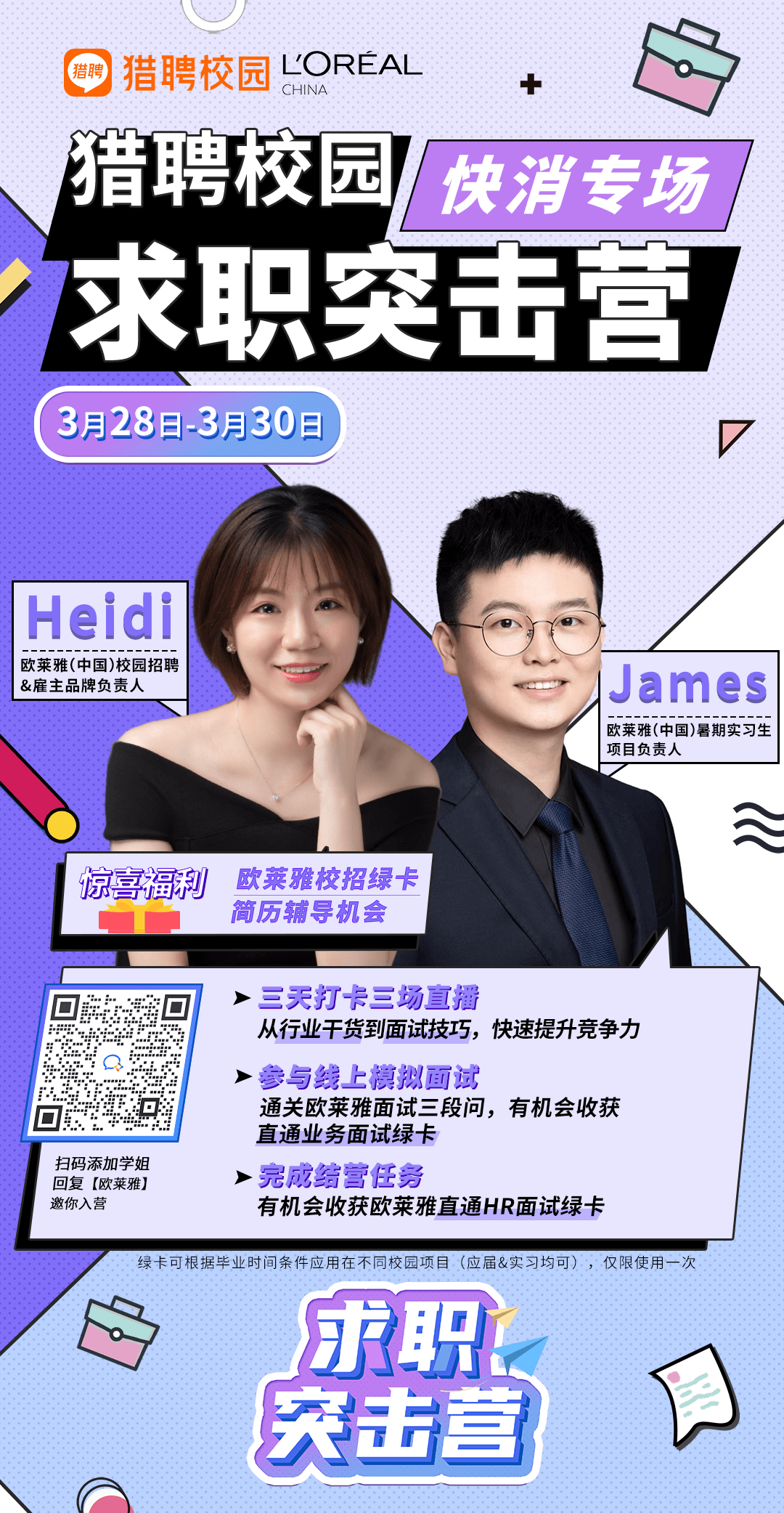 另外欧莱雅针对22届-24届同学,也有不限专业的校招岗位在招,现在参加「求职突击营」完成任务表现优异者,可以拿到面试直通卡哦~