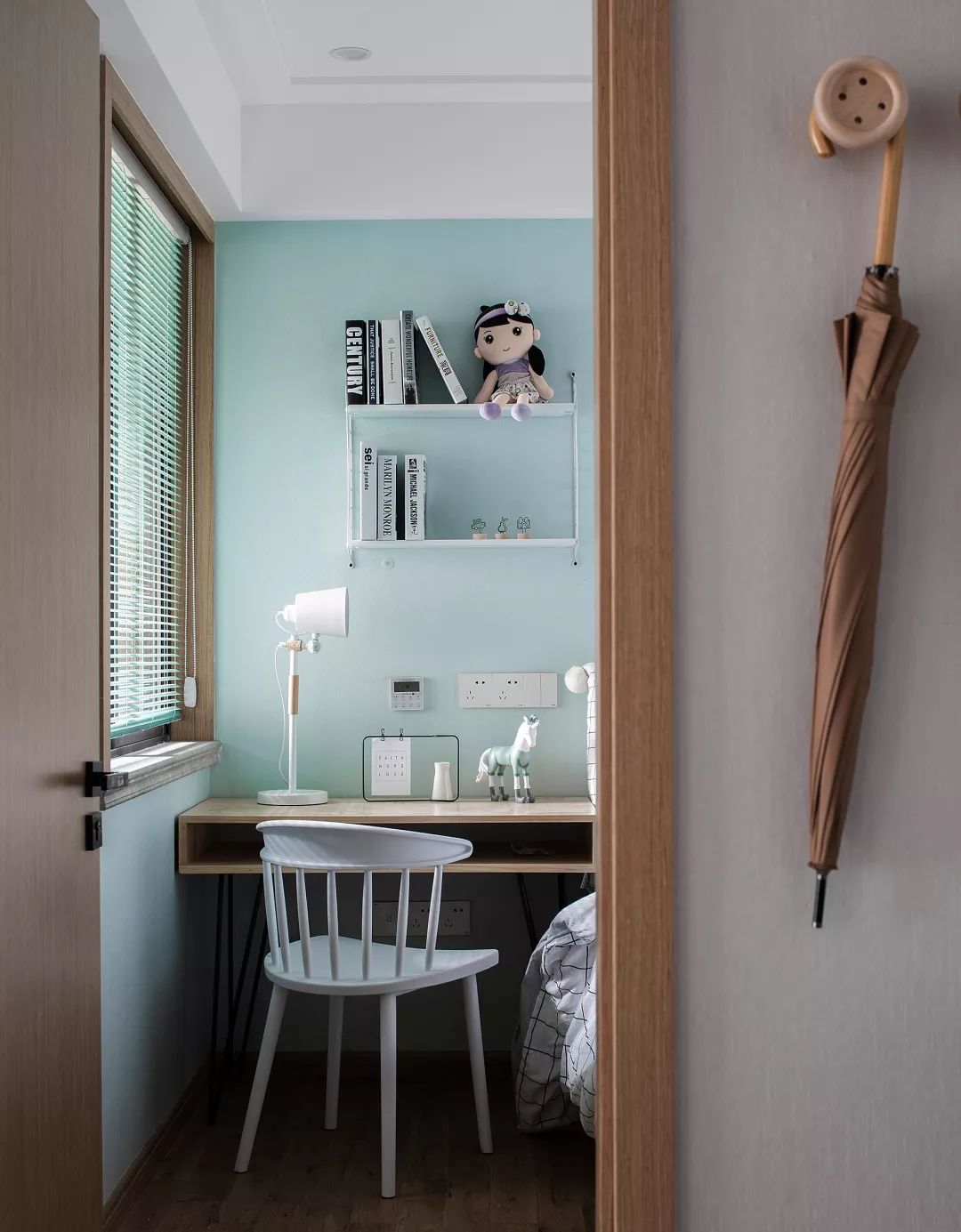墙面经常接触到的地方小面积用了瓷砖铺贴的手法,使平常的护理卫生没有后顾之忧