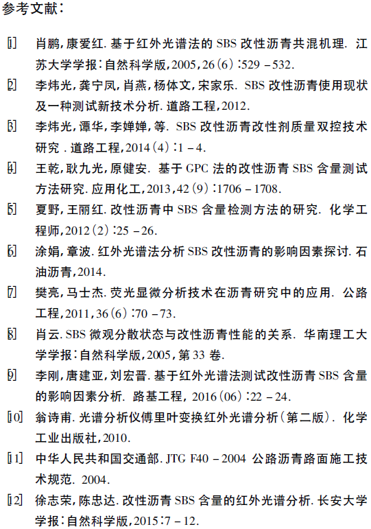 红外光谱 | 改性沥青 | SBS含量 | 检测 | 可靠性