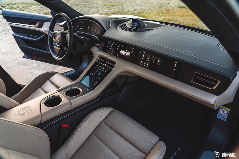 新车的内饰设计和标准版Taycan完全一致,没有什么惊喜。整体布局横向展开,除了多功能方向盘和电子挡杆外基本找不到实体按键,所有的功能都集成在4块很显科技感的屏幕中,当然,最右侧的10.9英寸副驾驶前屏幕需要选装。 Sport Chrono套件和Porsche Electric Sport Sound(就是所谓的外放飞船音效)是“Turbo S”车型的专属,其它版本要选装。