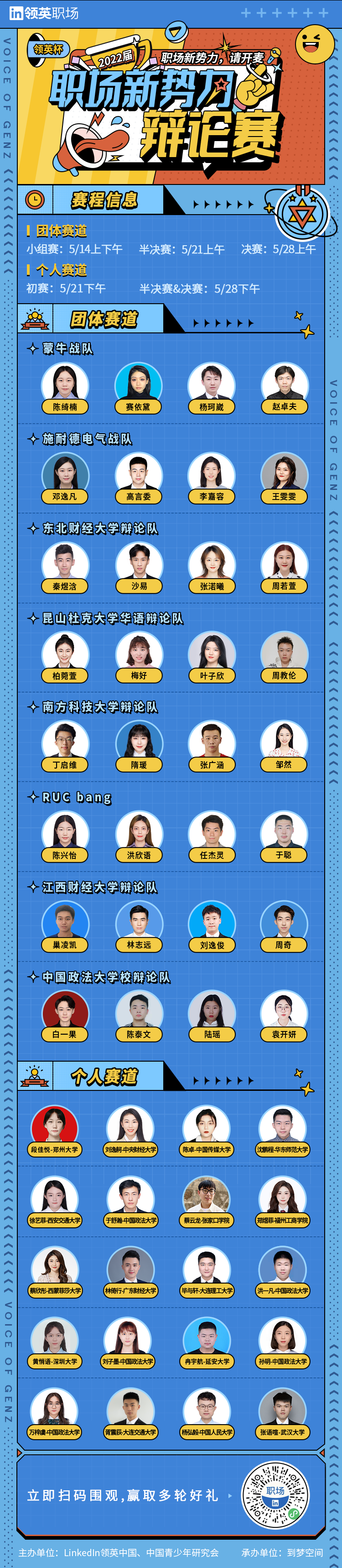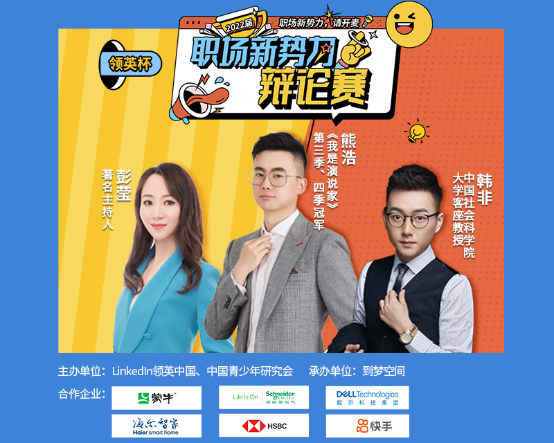 由LinkedIn领英中国联合中国青少年研究会主办,到梦空间承办的「领英杯2022届职场新势力辩论赛」即将开麦!
