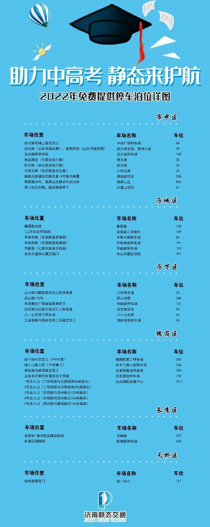 @考生家长!济南免费开放近万个停车位!详细位置公布