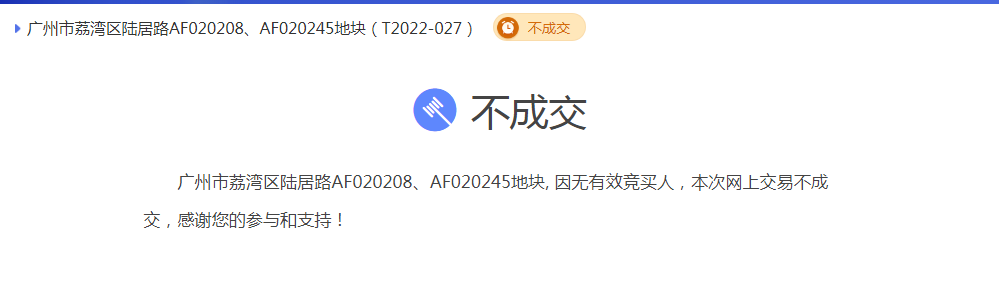 此外,和金桥二期地块形成鲜明对比的,是同位于荔湾的陆居路地块,开拍前便无人出价,开拍时也未曾有房企光顾,最终遭遇流拍,成为本轮唯一流拍的地块。