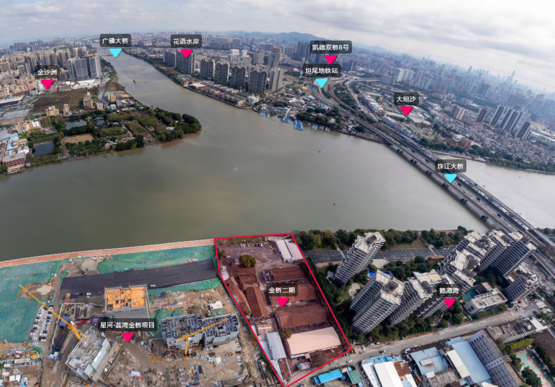 荔湾金桥二期地块位于芳村大道西北侧,北接珠江,可望三江口,东临白鹅潭湾居住区,妥妥的一线江景宅地。