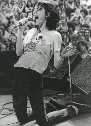 比如卡朋特乐队的主心骨——女鼓手及主唱卡伦·卡朋特,为了得到完美身材,她不断地节食减肥,最终死于厌食症所引起的心脏衰竭。 但就在六七十年代,一位身着白衬衫,留着不羁短发的女子出现在人们面前,用诗般的朋克乐,击碎了长久以来被构建的女人形象。